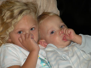 I always find myself running for the camera when I discover the kids sharing sweet, peaceful moments like these. I also think it's pretty cute that they are both sucking their thumbs.![]()